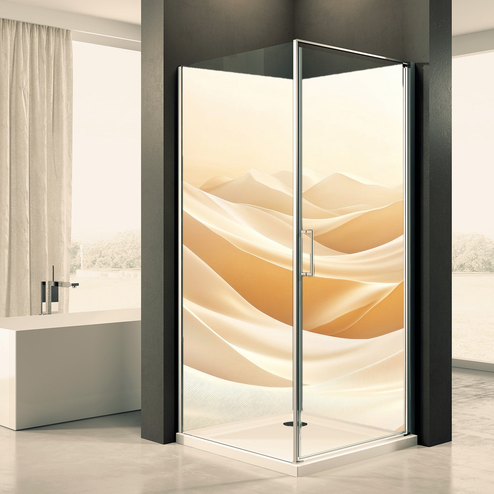 Deine Duschrückwand wird gefertigt aus einer 3mm starken Aluminiumverbundplatte. Eine Alu-Verbundplatte besteht aus zwei Aluminiumschichten und einem Polyethylenkern die unsere Duschrückwände besonders stabil und wasserdicht machen.