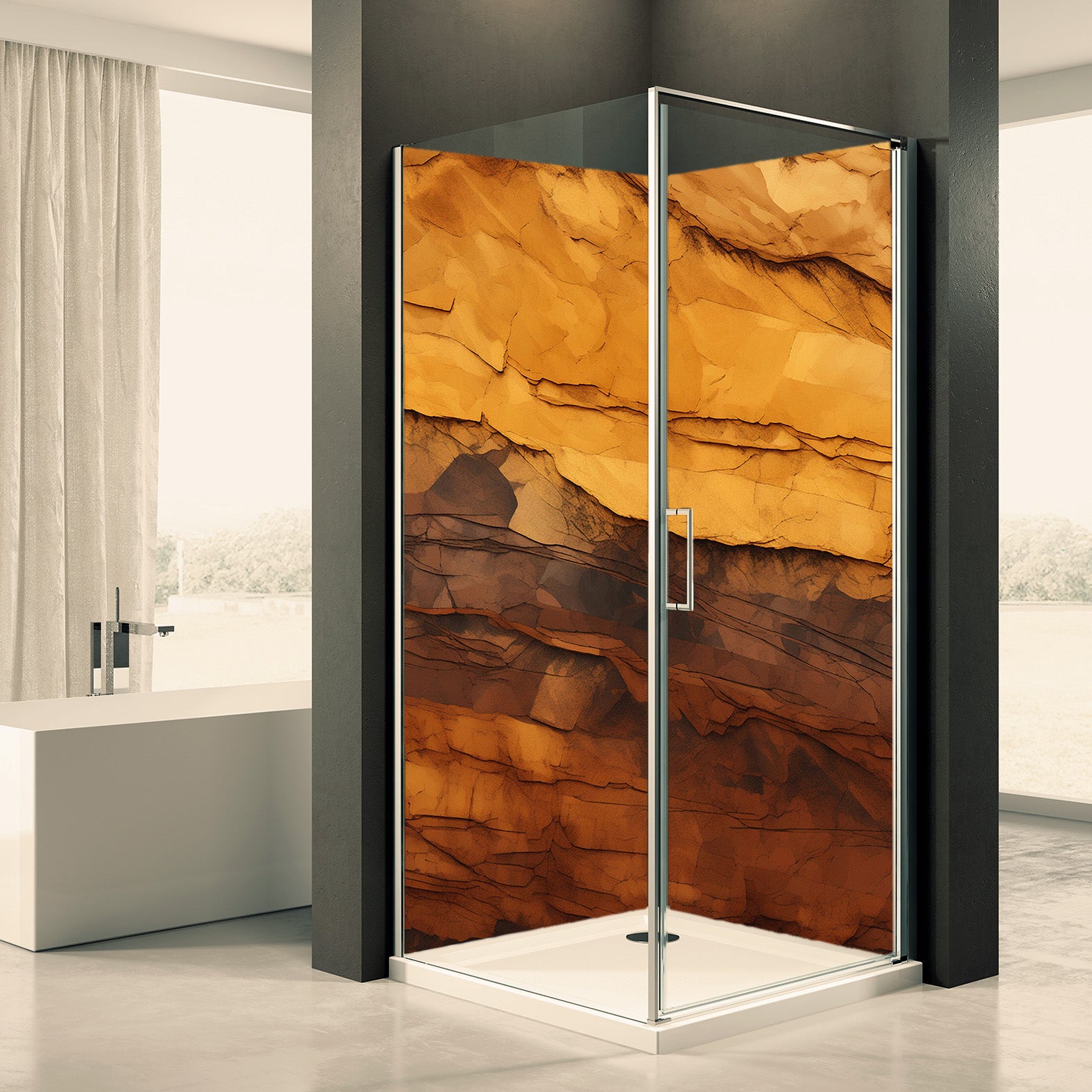 Deine Duschrückwand wird gefertigt aus einer 3mm starken Aluminiumverbundplatte. Eine Alu-Verbundplatte besteht aus zwei Aluminiumschichten und einem Polyethylenkern die unsere Duschrückwände besonders stabil und wasserdicht machen.