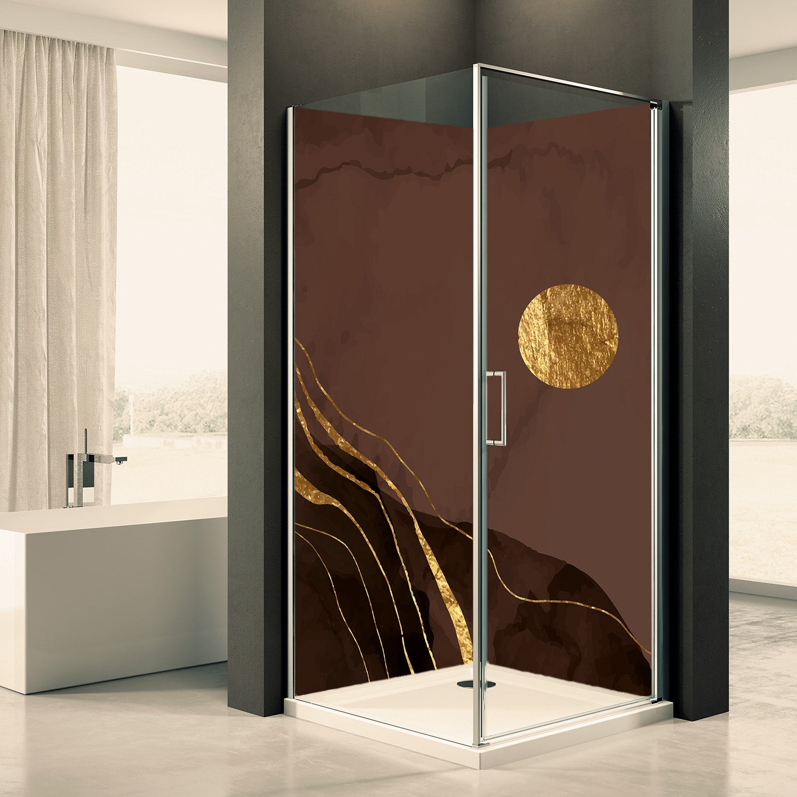 Deine Duschrückwand wird gefertigt aus einer 3mm starken Aluminiumverbundplatte. Eine Alu-Verbundplatte besteht aus zwei Aluminiumschichten und einem Polyethylenkern die unsere Duschrückwände besonders stabil und wasserdicht machen.