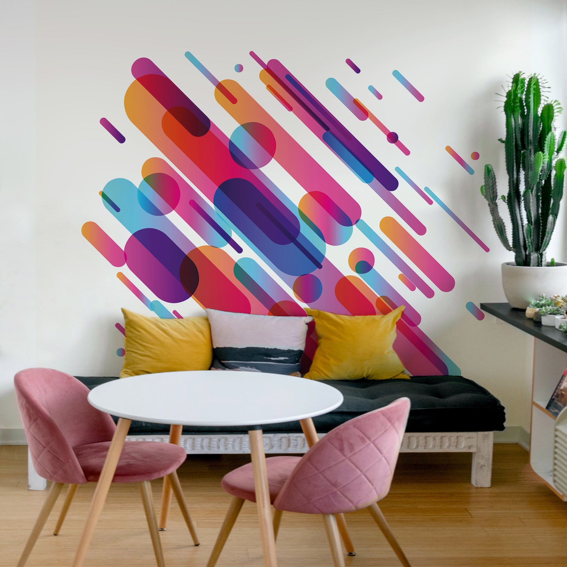 Wenn deine Wand Fenster, Türen oder Schrägen hat, überlege gut, wie du das Motiv platzieren willst – lieber etwas großzügiger bestellen und dann vor Ort anpassen.